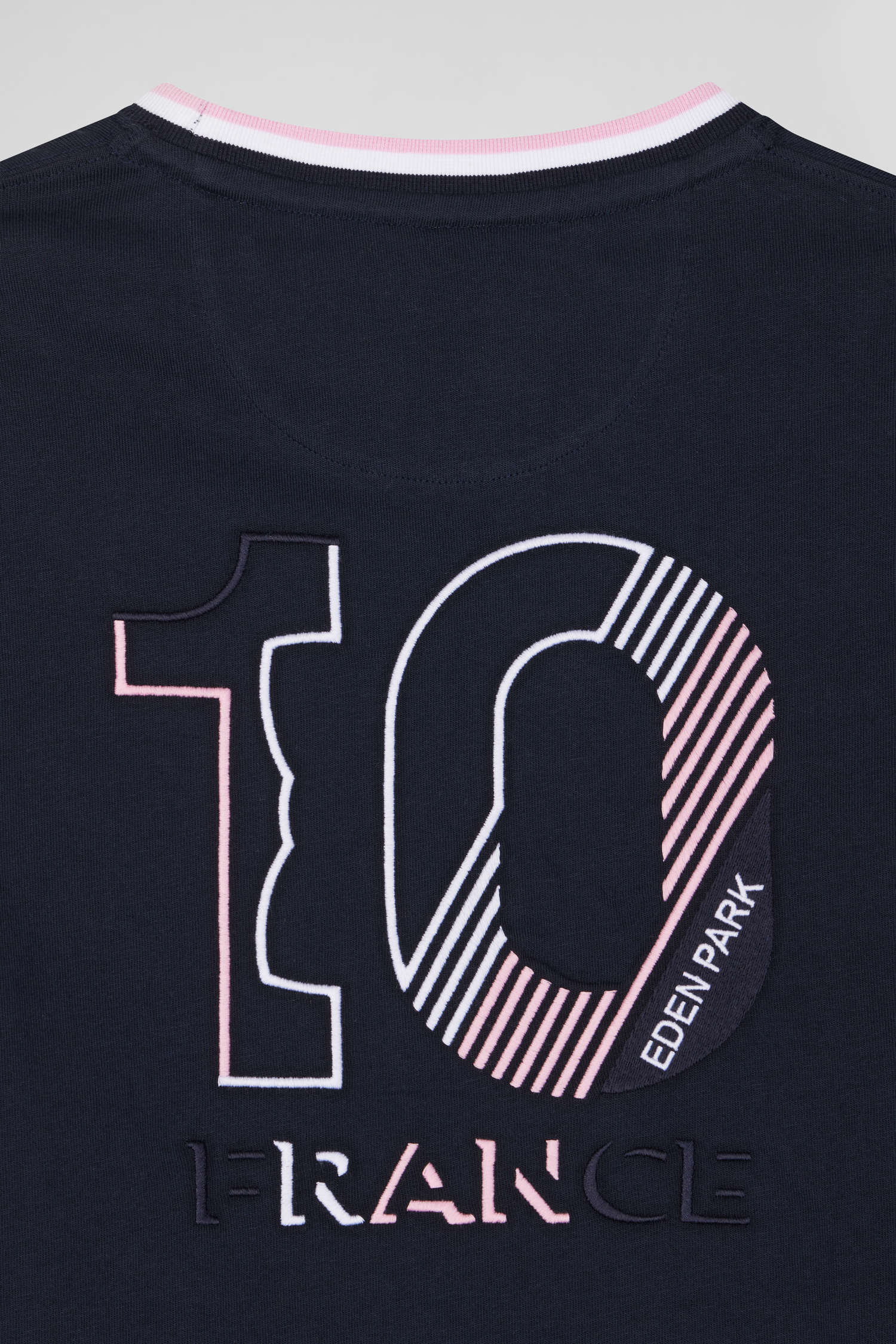 Working alongside the XV de France, Eden Park designs clothing imbued with the spirit of the game for everyday elegance. This navy blue cotton T-shirt features subtle details and back embroidery highlighting the French cockerel symbol. Its round collar and straight cut offer timeless comfort, perfect for all occasions.