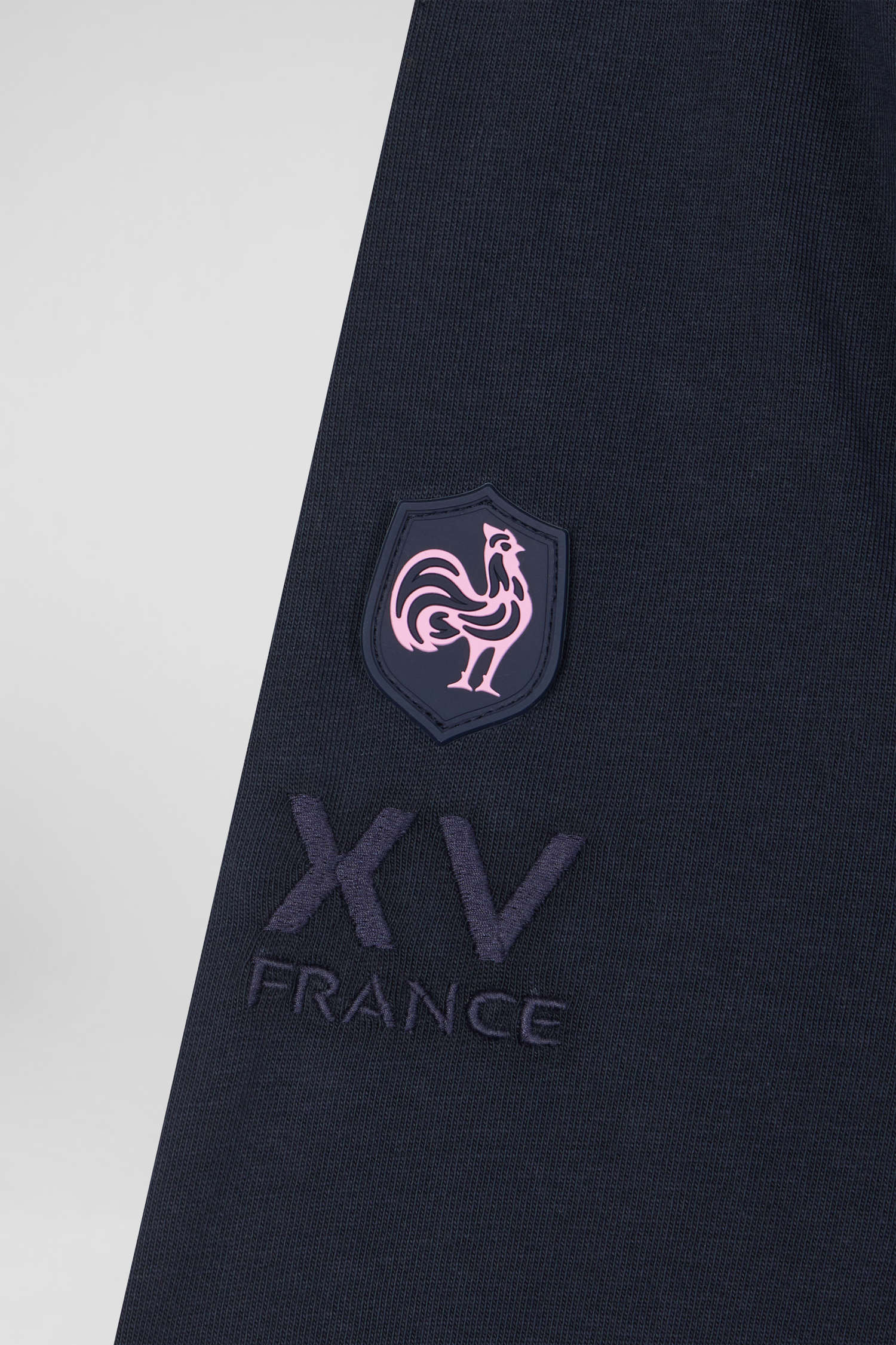 - Embroidery and neckband in XV de France tie fabric