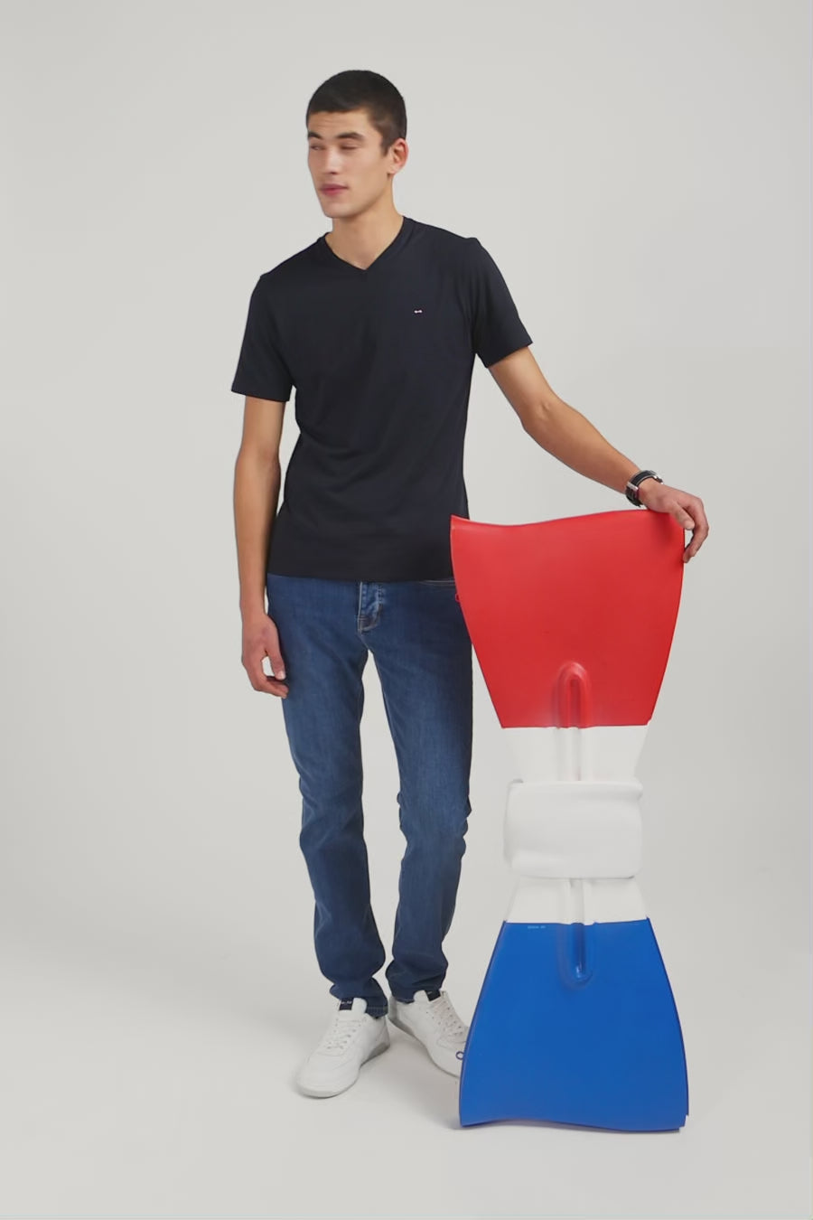 Designed in Pima cotton jersey for soft breathability, this T-shirt features a V-neck and pink embroidered bow tie logo on the breast