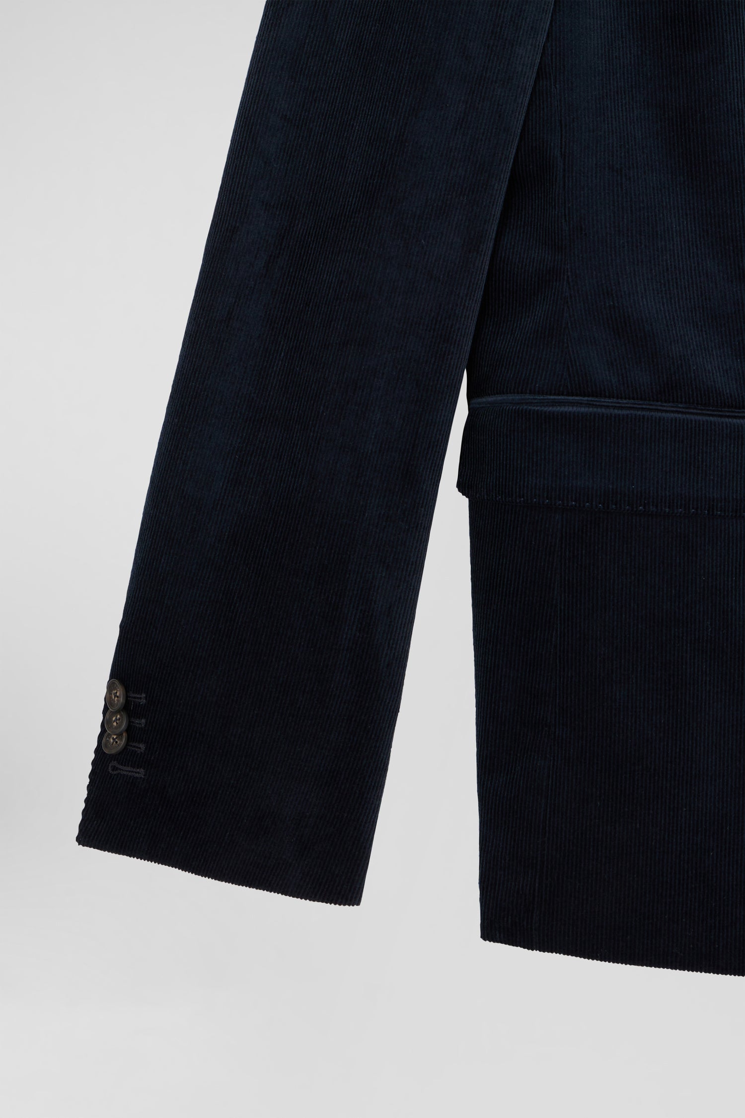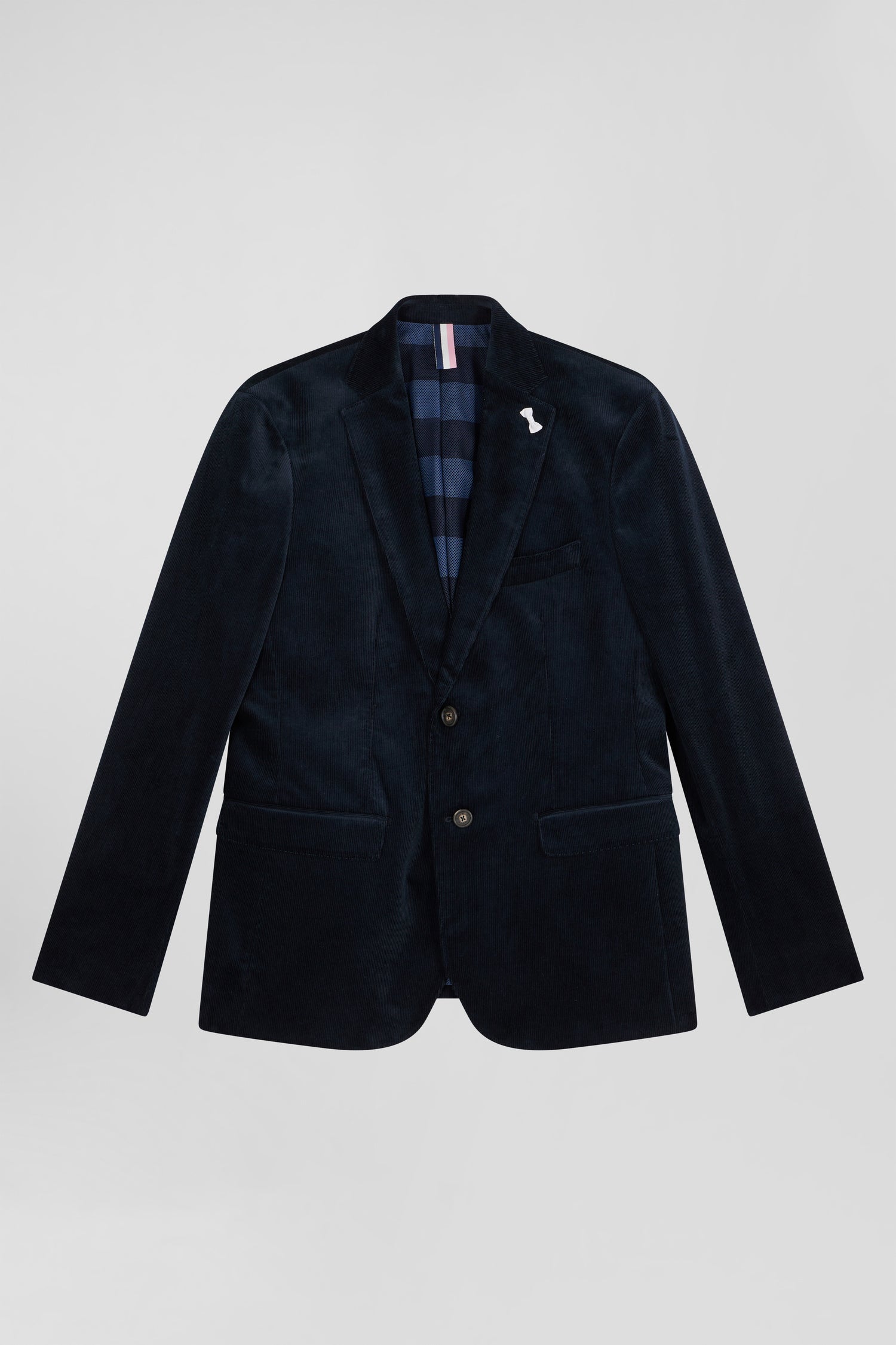 Our stretch cotton velvet jacket is perfect for adding a touch of sophistication to your wardrobe. This classic piece is enhanced by a hooped lining, adding Eden Park's signature subtle, elegant contrast. It features two flap pockets and a chest pocket, while a side slit ensures optimum freedom of movement. Ideal for formal occasions or as a chic addition to casual attire in its timeless navy or brown colorway.